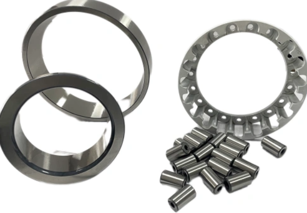 Four-row tapered roller bearings can accommodate combined (radial and axial) loads at low to moderate speeds. They are used almost exclusively in work roll applications such as rolling mills.