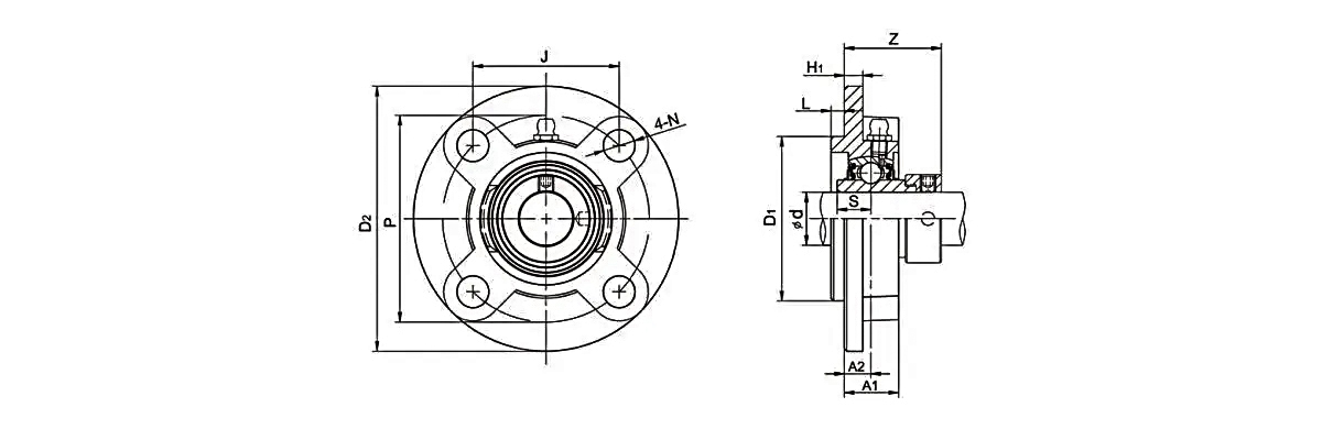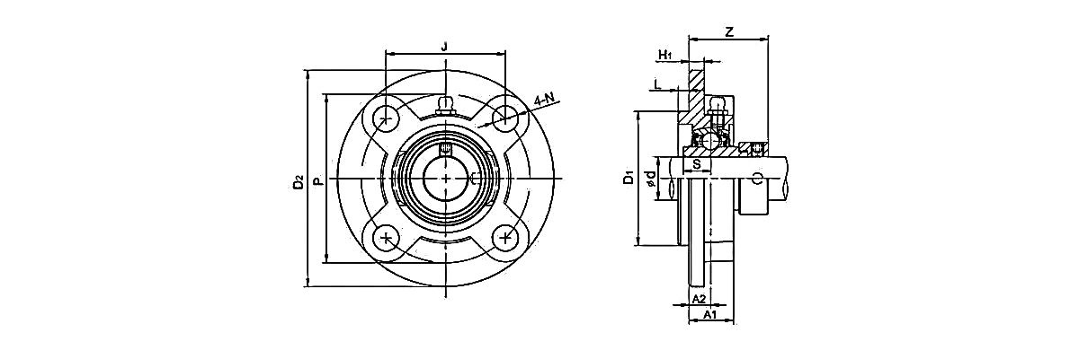 Flange Cartridge Bearing Units, UCFC Standard duty, Wider inner ring bearing,Setscrew locking, Cast gray iron housing Flange Cartridge Bearing Units