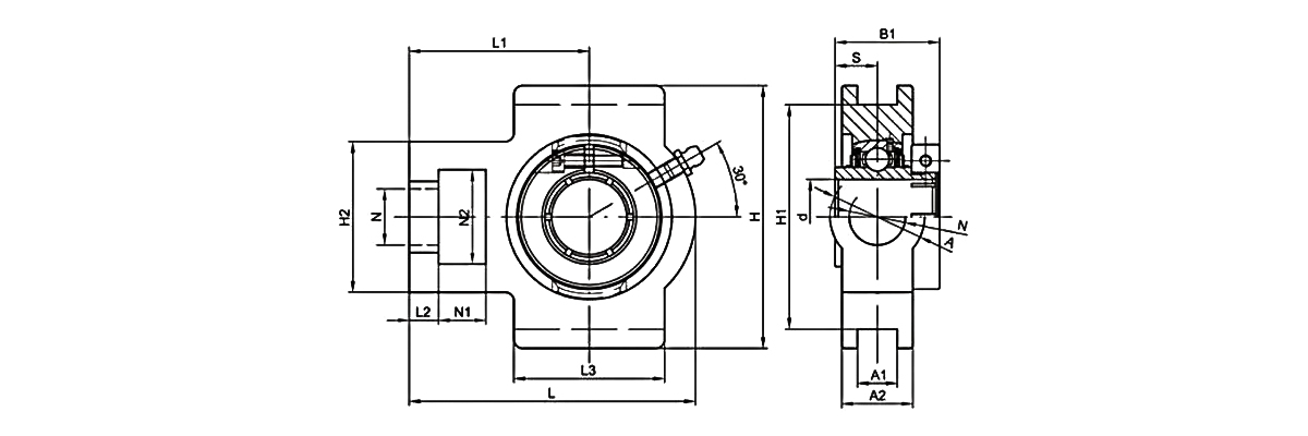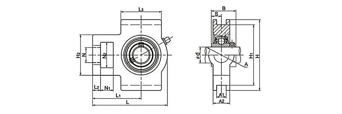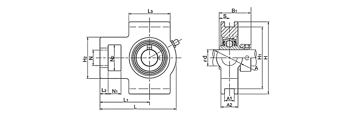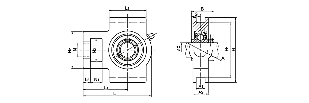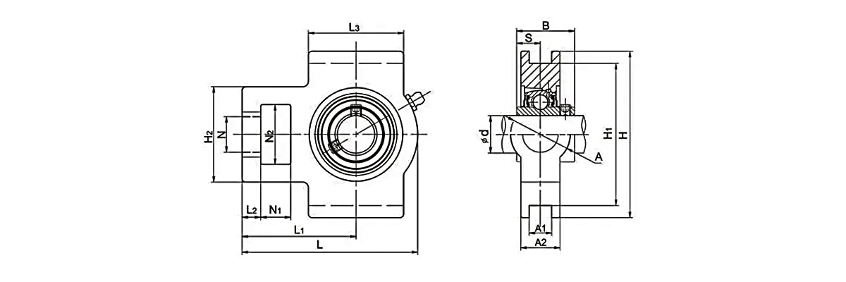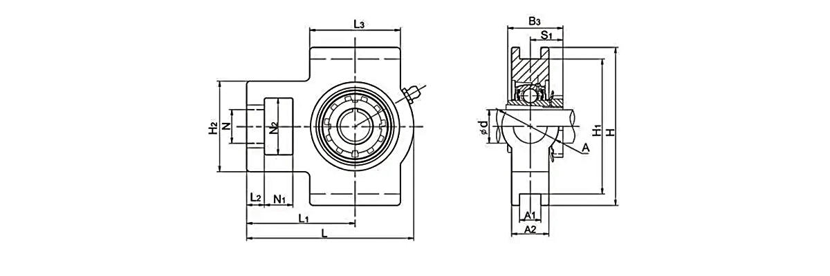 This product is a mounted bearing unit consisting of a T-type housing and an insert bearing. The housing is available in cast iron, ductile iron, plastic, and stainless steel designs. UC housing units may utilize chrome steel or stainless steel materials. Specific material selection depends on the bearing unit's application scenario, with cast iron housings paired with chrome steel internal bearings being the mainstream market configuration. Stainless steel and plastic TAKE UP Bearings are typically used in chemical and food industries.