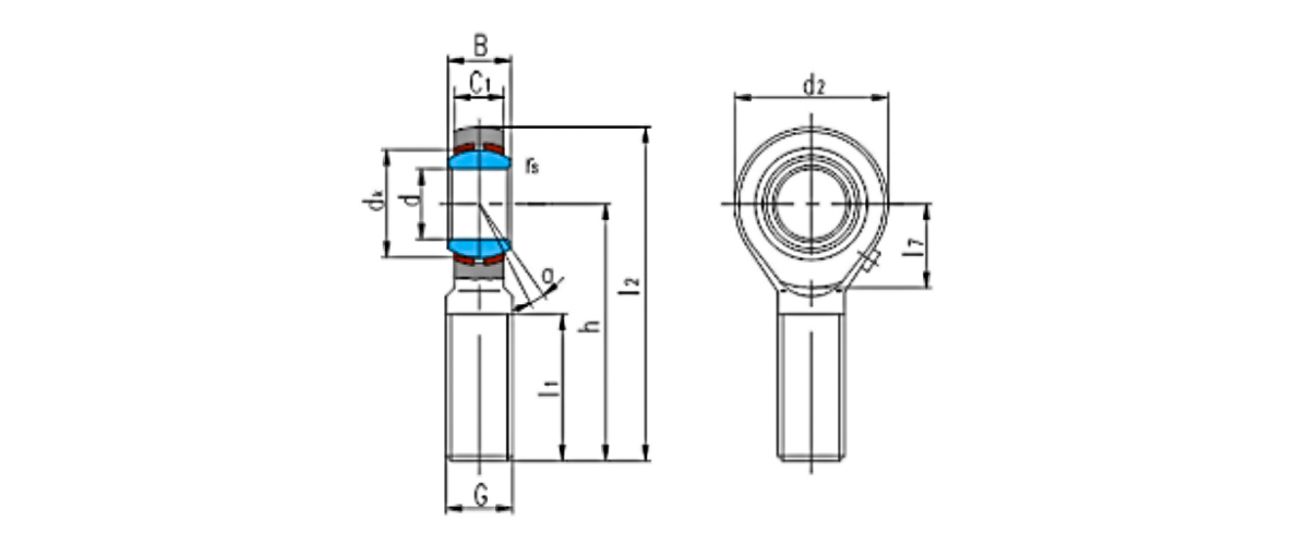 The rod end body is made of high-quality carbon steel with a galvanized surface; it has an internal high-performance bronze liner that forms a sliding pair with the hardened bearing steel inner ring (spherically hard chrome plated). Except for sizes with a bore diameter less than 6.35mm, all models are equipped with an oil cup for lubrication.